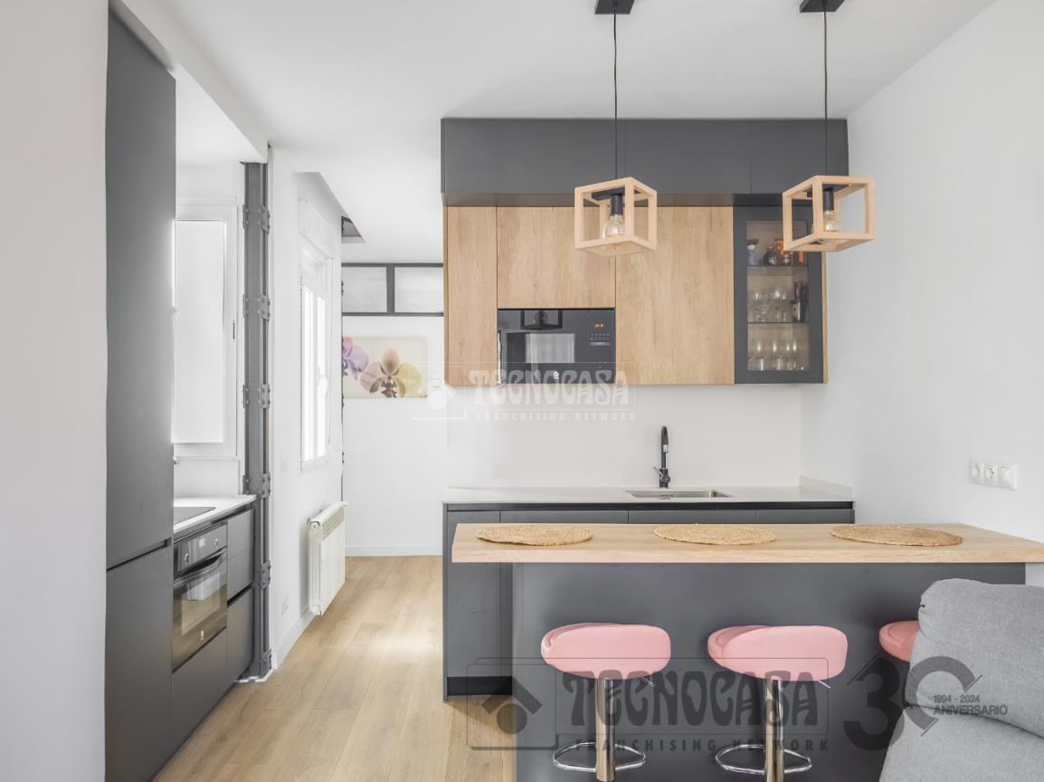 EN VENTA: Calle RIOS ROSAS. Piso en 6ª planta EXTERIOR REFORMADO, finca señorial, con 2 dormitorios, 1 cuarto de baño completo con plato de ducha y cocina equipada con lavadora y lavavajillas.